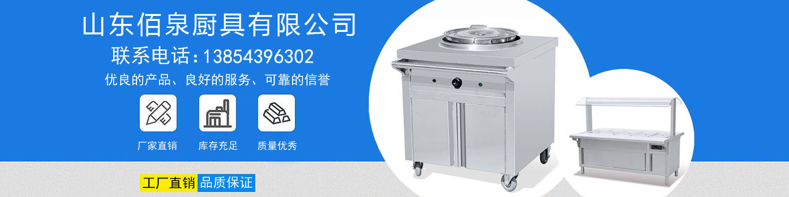 山东佰泉厨具有限公司,成立于2014年,公司占地面积15000多平方米,座落于全 国百强县,山东工业重镇,我国厨都。本公司是一家集科研、设计、销售于一体的现代 化商用不锈钢厨房设备制造企业。拥有雄厚的技术力量,精良的激光、数控生产设备, 科学的管理体制。多年来,企业以高质的产品,良好的信誉,实惠的价格赢得了广大客 户的支持与推崇。我们以市场需求为导向,雄厚的实力为保障,吸取同行业的先进经验, 广泛征求用户意见,生产更人性化,更理念化产品。 公司秉承:“顾客至上”,“锐意进取”的经营理念,坚持“客户满意”的原则。 公司宗旨:“集时代精英”,“展佰泉精品”。